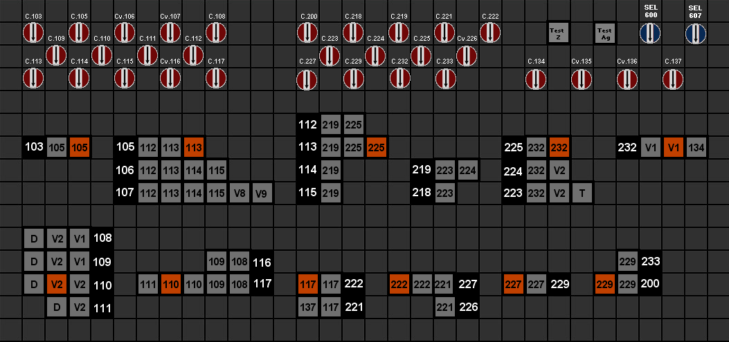 Comme il est précisé dans la page "Le projet", nous avons fait en sorte que le maximum de fonctions soient confiées à l'informatique. Les tables de commandes n'échappent pas à cette règle. Sur la version actuelle, nous nous sommes efforcés de créer des boutons semblables à ceux que l'on rencontre dans les postes PRS.