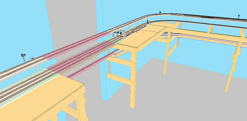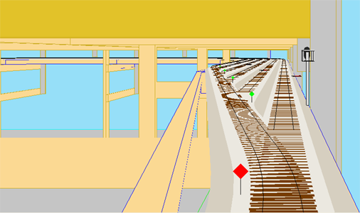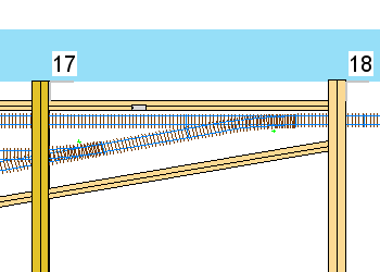 Autre vue avec la voie affichée normalement . Chacune des 38 travées dispose d'un numéro de repère. Cela permet de localiser très facilement n'importe quel organe (câblage, appareillage, etc...) à partir des plans ou du tableau Excel des affectations. |