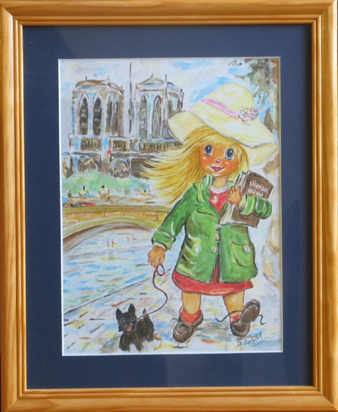 Le petit chien noir semble bien heureux de se promener sur les quais, à proximité de Notre Dame, aux côtés de sa petite poulbotte ! Ce tableau a été réalisé en novembre 2004. C'est une aquarelle de 18 x 24 cm.