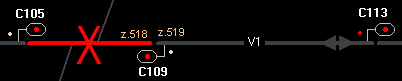 La zone aval du signal origine doit être libre, (dans le cas d'un itinéraire en DA) |