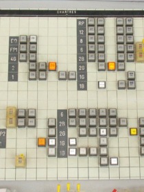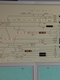 Parmi tous les postes d'aiguillage existants, nous avons retenu le PRS (Poste tout Relais à transit Souple). Bien entendu, dans notre application, nous avons remplacé la multitude de relais que l'on retrouve dans cette génération de postes par des variables informatiques bien moins encombrantes, moins coûteuses et plus faciles à mettre en oeuvre. |